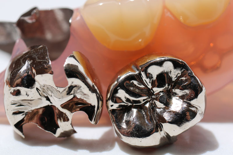 歯肉に触れる部分が金属素材で作られた入れ歯です。熱伝導率が良く、食べ物の温度を感じやすいという特徴を持っています。また、装着時の違和感もほとんどありません。薄い割に強度が高く、床に落としても割れる心配はありません。金属の種類によって特性が異なりますので、患者様の歯の状態に合わせてお選びください。ご相談いただければ、当社からおすすめの金属をご提案いたします。