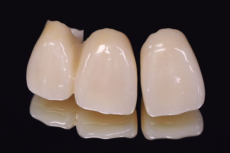 強度・弾性・粘性ともに優れている素材です。割れや欠けなどが起こりにくいというメリットがあります。金属を使わないため生体親和性にも優れており、金属アレルギーの方にも問題なくご使用いただけます。