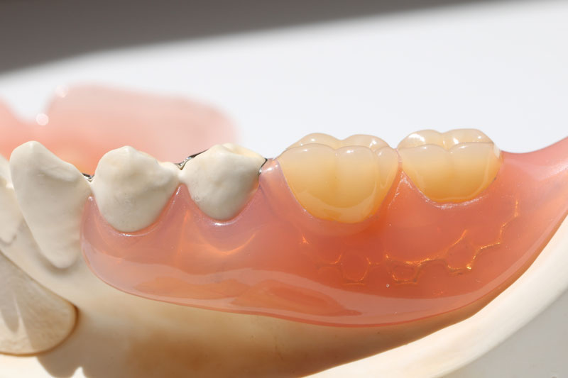 歯肉に触れる部分が金属素材で作られた入れ歯です。熱伝導率が良く、食べ物の温度を感じやすいという特徴を持っています。また、装着時の違和感もほとんどありません。薄い割に強度が高く、床に落としても割れる心配はありません。金属の種類によって特性が異なりますので、患者様の歯の状態に合わせてお選びください。ご相談いただければ、当社からおすすめの金属をご提案いたします。